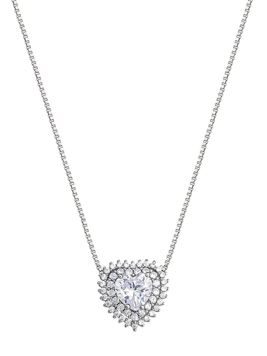 Fine Silver Plated Cubic Zirconia Heart Necklace, 18" +2"