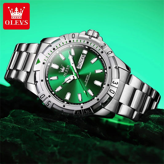 OLEVS Diving Series Quartz Wrist Watch for Men Stainless Steeel Waterproof Luminous Auto Date/Week Luxury Men'S Watch Relogios