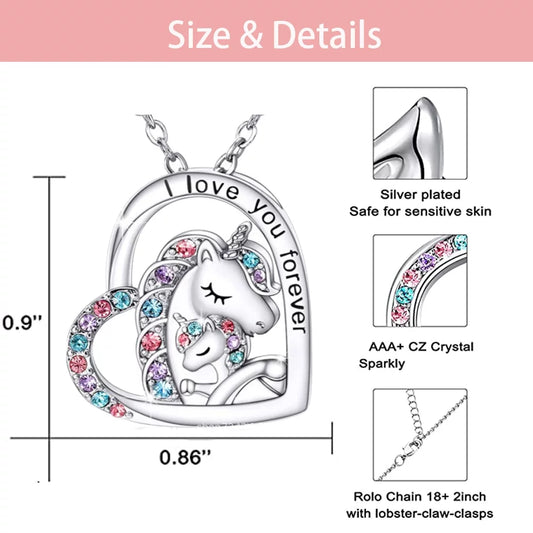 Unicorn Necklace for Girls Crystal Heart Necklaces Jewelry Birthday Christmas-I Love You Forever